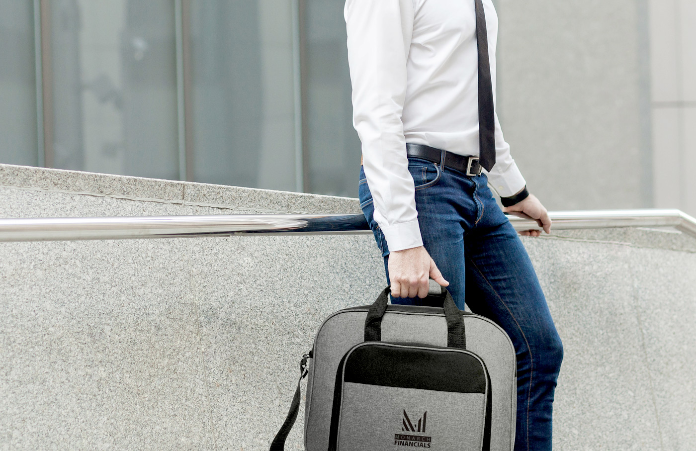 The brief can also be worn using the adjustable cross body strap.