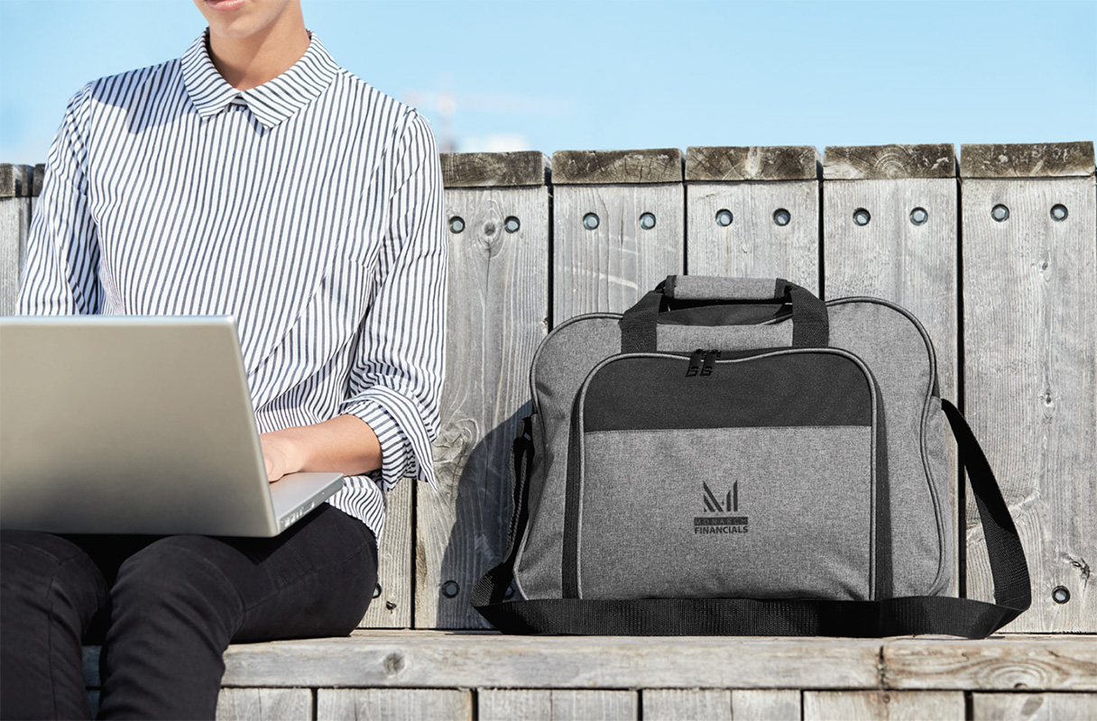 The combination of the sleek reverse zipper tape, sharp black trims and the deep heather gery fabric that adorns this brief makes the smart styling perfect for organizing basic business essentials.