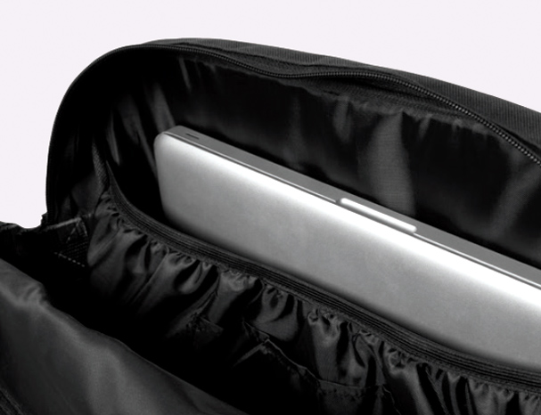 Padded laptop compartment protects and accommodates laptops up to 15.5”